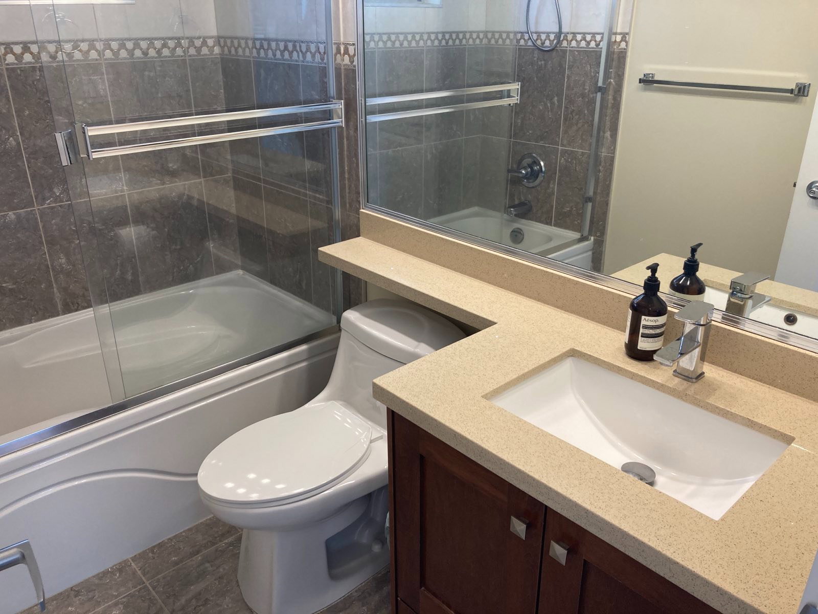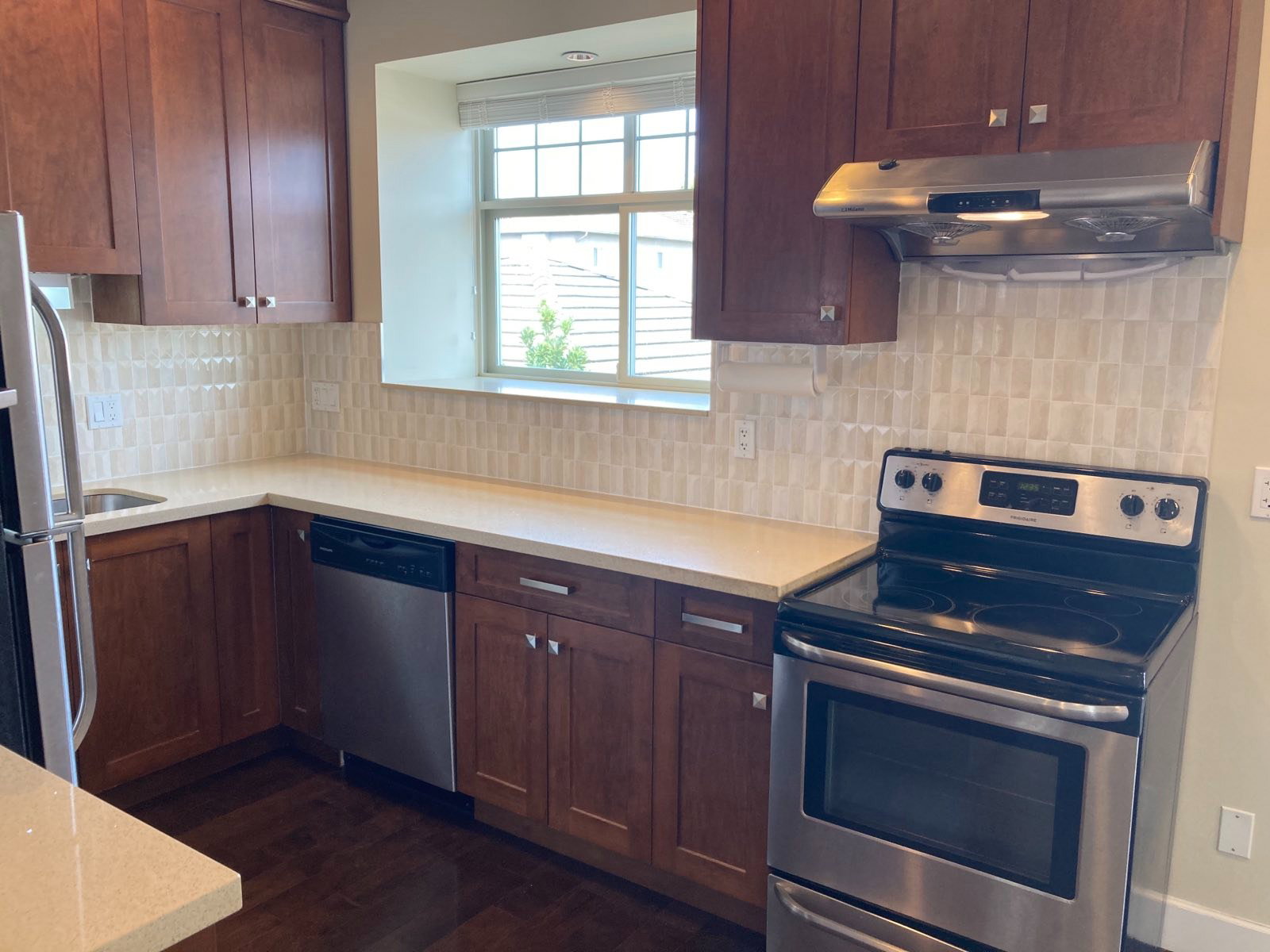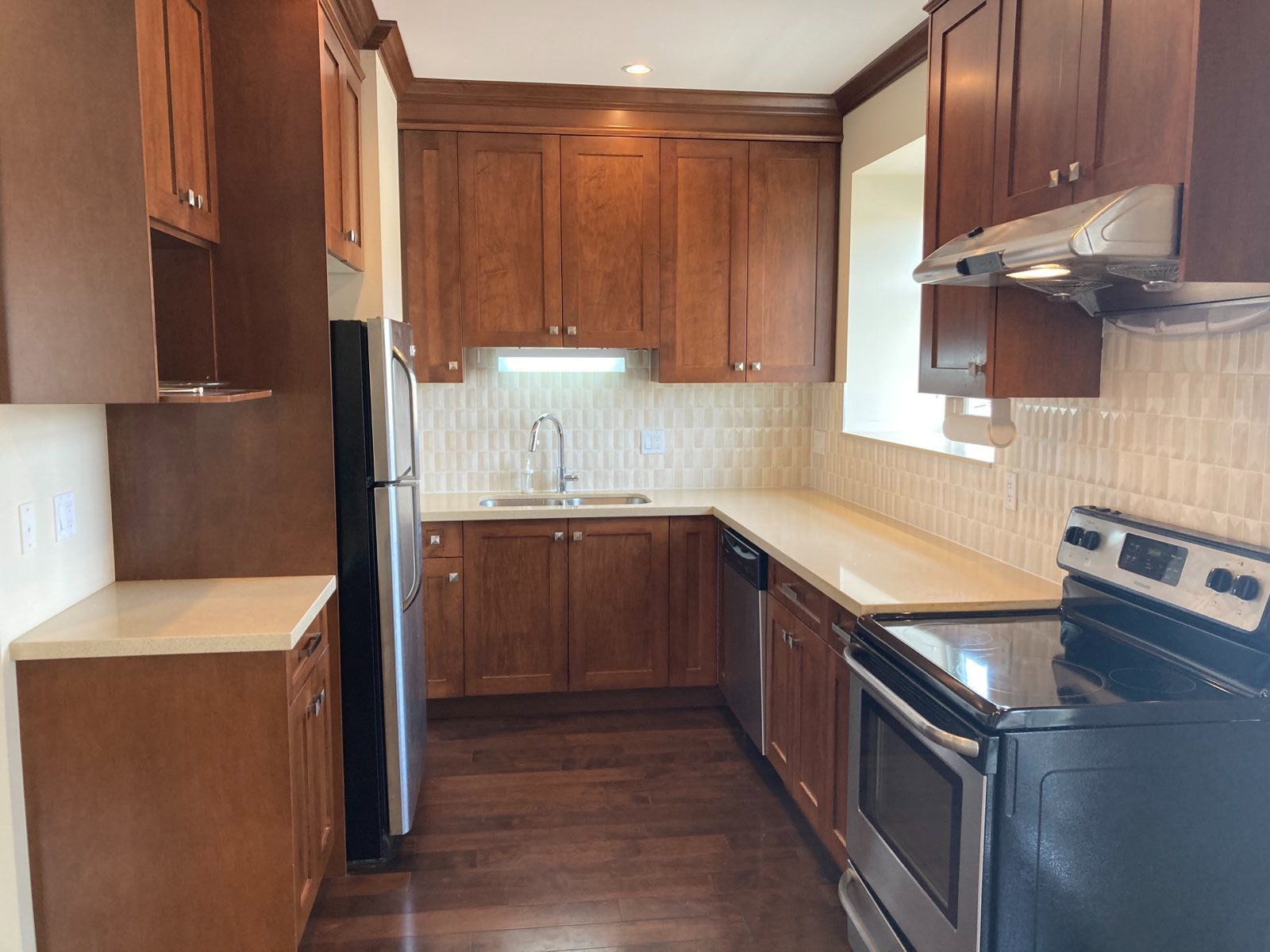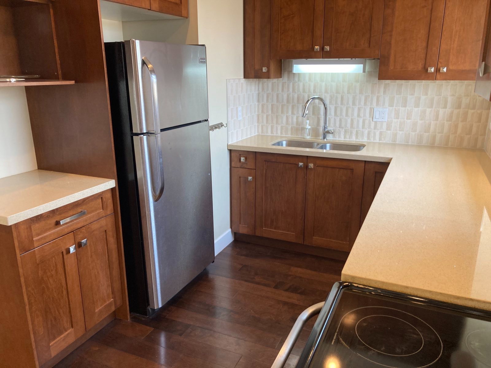Bright and open upper suite of the back half of a duplex. Located in Central Burnaby. This quality built 615 sqft unit has a very functional layout with 9ft ceilings. 2 bedrooms & 1 bathroom. Modern kitchen with granite countertops, maple wood cabinets, engineered hardwood floors, radiant heat. North-eastern views of the mountains. Private in suite laundry on the main floor. Close to Scotia Barn (8-rinks), Christine Sinclair Centre, Bill Copeland Arena, Burnaby Lake Sports Complex, Douglas Elementary, Burnaby Central Secondary, Lots of hiking and biking @ Deer Lake, & Burnaby Lake. Easy access to Highway #1, Lougheed Highway, BCIT & SFU.